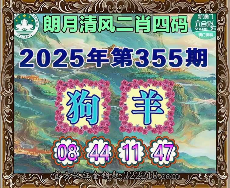 355期:『朗月清风』  ♣️二肖四码 ♣️【羊】【08.44.11.47】开:狗08