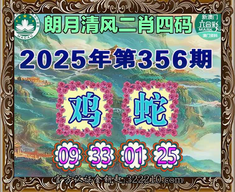356期:『朗月清风』  ♣️二肖四码 ♣️【鸡蛇】【09.33.01.25】开:马24