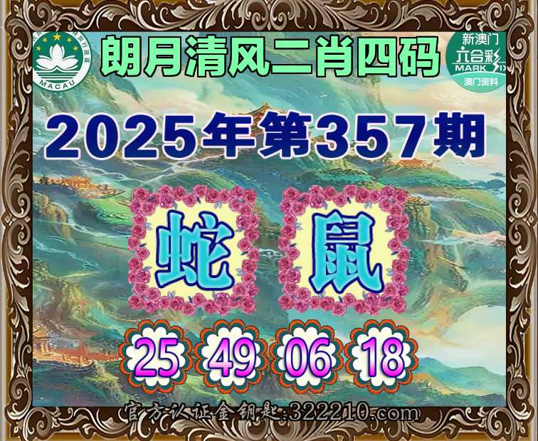 357期:『朗月清风』  ♣️二肖四码 ♣️【鼠】【25.49.06.18】开:蛇49