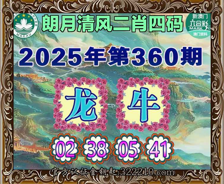 360期:『朗月清风』  ♣️二肖四码 ♣️【龙】【02.38.05.41】开:牛41