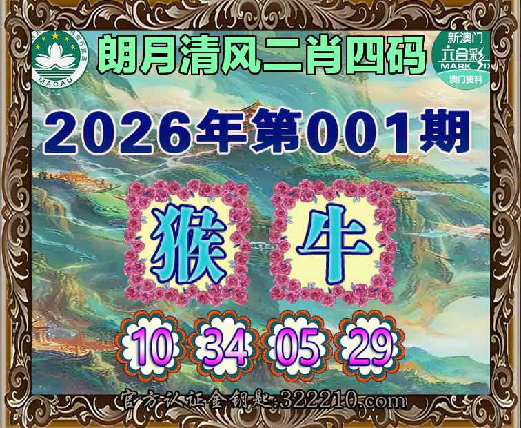 001期:『朗月清风』  ♣️二肖四码 ♣️【猴】【10.34.05.29】开:牛29