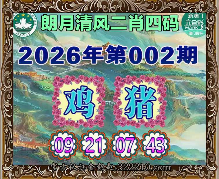 002期:『朗月清风』  ♣️二肖四码 ♣️【鸡猪】【09.21.07.43】开:00准