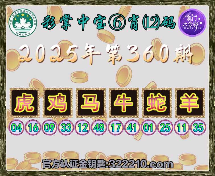 360期:《彩掌中宝》 📙⑥肖⑿码📙【虎鸡马蛇羊】开:牛41